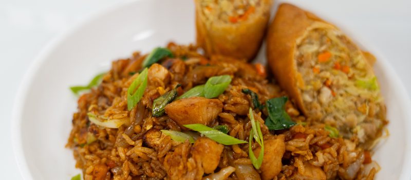 A flavorful bowl of fried rice with your choice of chicken or veggie, paired with one jumbo egg roll—available in pork, chicken, or veggie. The perfect balance of savory comfort and crispy satisfaction.