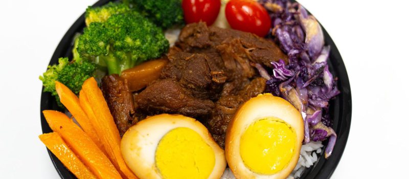 A flavorful bowl of tender pork served over rice & surrounded by a mix of colorful vegetables —choose between: Sweet Chili Pork or Braised Pork