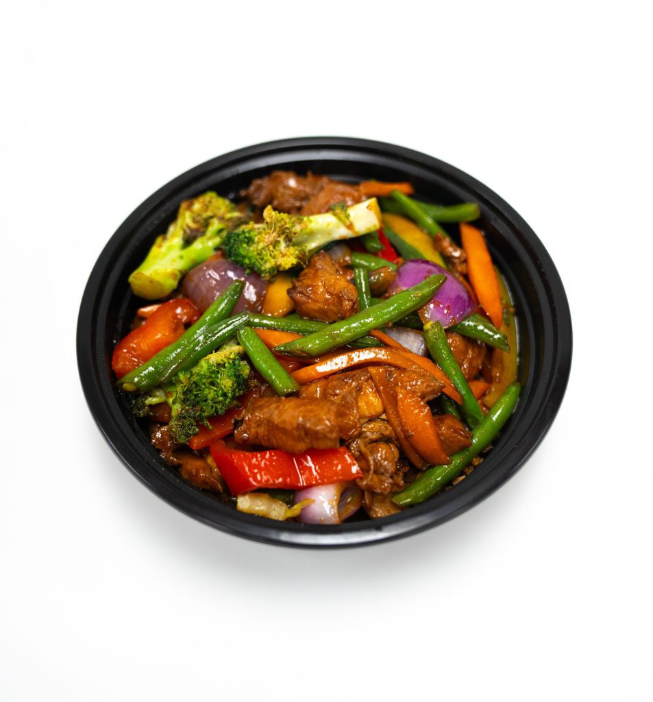 Tender chicken breast or pork, paired with savory ham and stir-fried with a vibrant mix of vegetables, served over fluffy steamed rice
